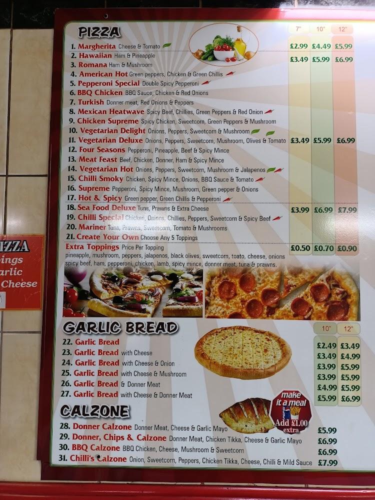 Nestled in the heart of Farnworth, Bolton, Chille's stands as a go-to spot for delicious pizza and quick bites. Its strategic location at 113 Market St. means it’s close to shopping areas and parks, making it a great place to stop for lunch or dinner. Open every day of the week, Chille’s accommodates both dine-in and takeout customers, providing flexibility for different dining preferences. The friendly staff, with special mentions to Ashad who's dubbed a pizza-making genius, creates an inviting atmosphere that enhances the casual dining experience. Local love for Chille's runs deep; many patrons have been returning for years to indulge in their favorite dishes, creating a community of satisfied customers that keeps growing. With its affordable price range, families, students, and anyone looking for a tasty meal on a budget will find their cravings met without breaking the bank. Whether craving pizza, kebabs, or something special from their extensive menu, Chille's is a culinary staple in Bolton.